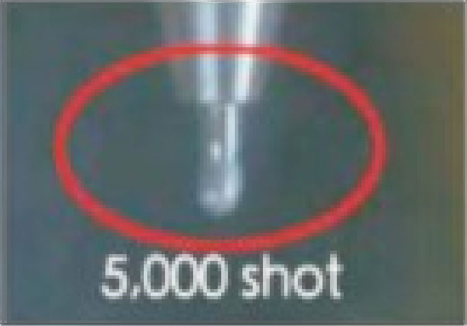 前端無拋光處理在5000次點(diǎn)膠后會(huì)出現(xiàn)爬膠現(xiàn)象.