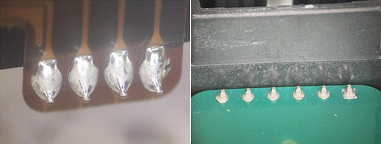 錫球通過導(dǎo)向通道到達(dá)噴嘴端部,發(fā)射激光融化, 加壓噴射到焊盤上,完成焊接。